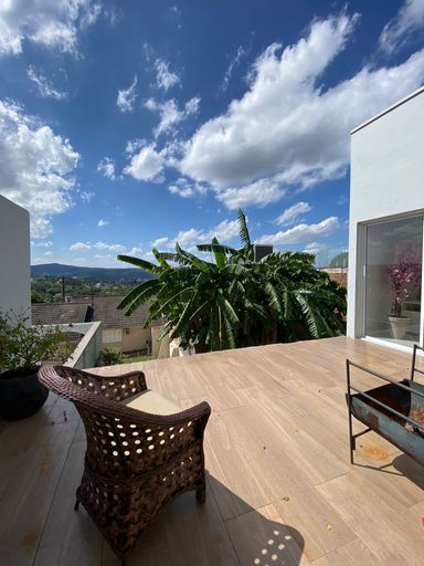 Terraço com linda vista panorâmica, com acesso direto pelo quarto do casal